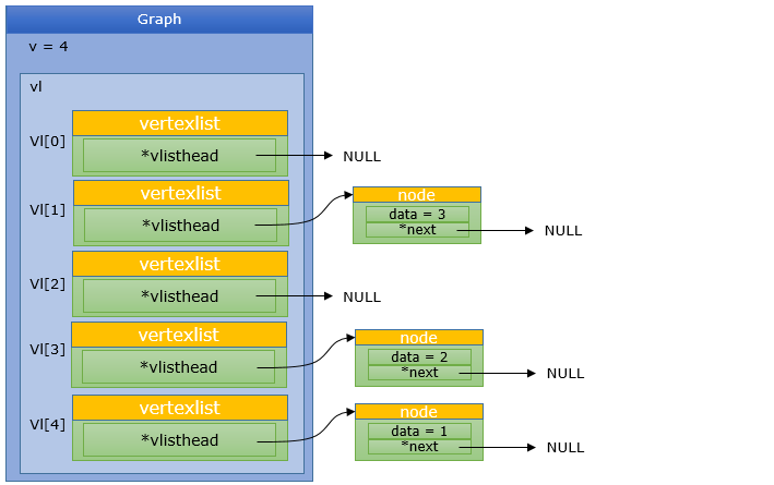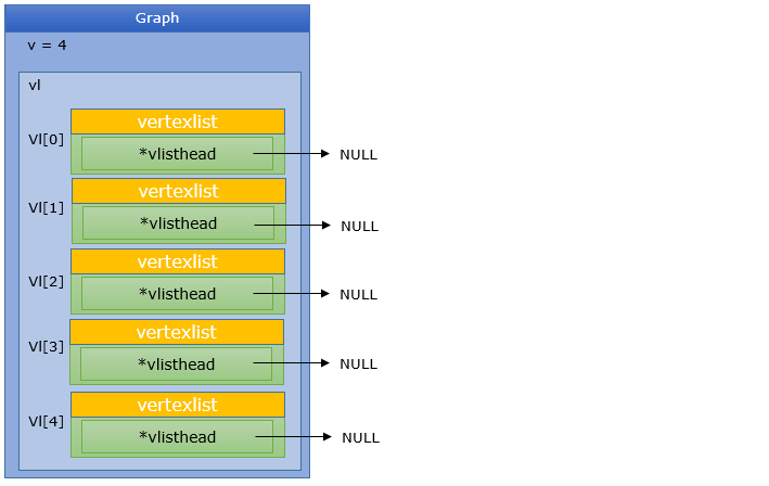 // Initialize the head to NULL. for(i = 0; i < n+1; i++) { vlist->vl[i].vlisthead = NULL; }