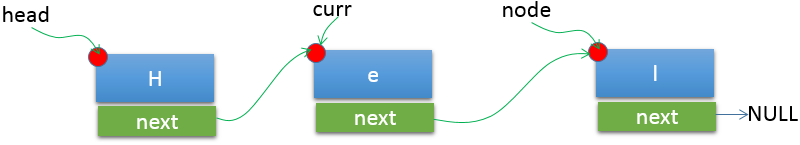 head = curr = create_list('H'); addItem('e'); addItem('l'); addItem('l'); addItem('o');