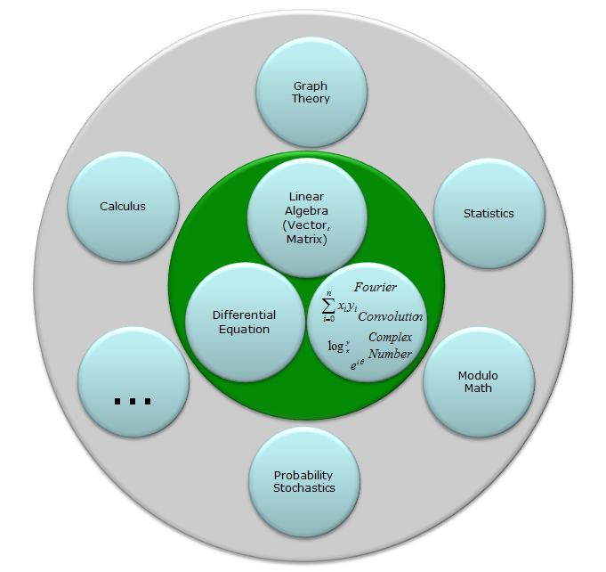 Now you may have the question : What do I need to learn/study ? Which one I have to study first ? At least in engineering, my recommendation is as follows. I would study those topics in Green circle first and then pick anything on Gray circle depending on which area of engineering you will be working on. According to my experience, those topics on Green circle would apply to whatever area in engineering you will be working on and you may see a little different items on Gray circle depending on the specific area you will be working on.