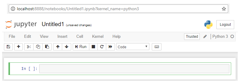 When run the command shown above, Jupyter runs automatically on your default browser as shown below.