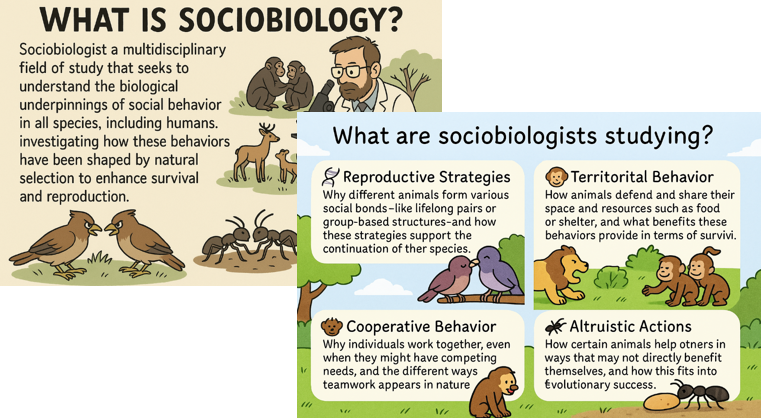 By examining the genetic, physiological, and ecological factors that influence social interactions, sociobiology aims to provide a comprehensive framework for understanding complex phenomena like: